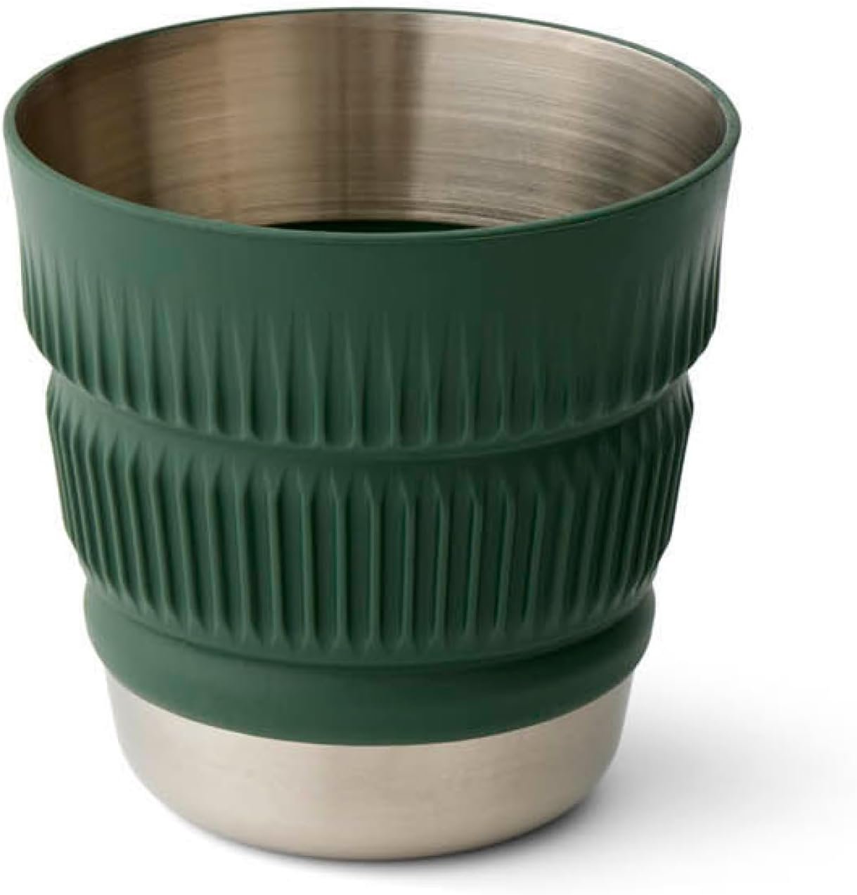 This 16-ounce camping mug features a laurel wreath green design and a collapsible construction for easy portability, perfect for outdoor activities, ensuring convenient and comfortable hydration every time. Durable materials guarantee longevity. Designed for everyday home use. It contains no patented designs or trademarks.
